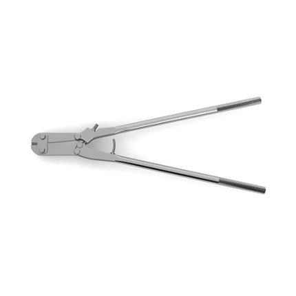 end cutting, tungsten carbide Pin Cutter is an instrument ideally suited for use in a variety of surgical procedures that require insertion and length adjustment to wire. A unique feature of this instrument is the pin block which minimizes the changes of the jaws being overloaded. Additionally there is an adjustment nut which enables the blades to be adjusted during heavy use or after the blade has been replaced. This instrument is suited for side cutting and is available in three lengths 16", 18.5" and 22" and with varied max cutting capacity 4.7 mm, 6.3 and 6.3 mm respectively.