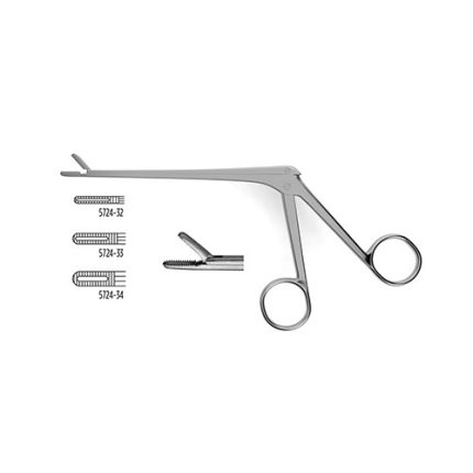 serrated jawsSpurling IVD Rongeur is ideally suited for orthopedic neurosurgical procedures of the spine. Interspersed between each vertebrae is an intervertebral disc that is fibrocartilagenous and this rongeur is unique designed to manipulate this region. These rongeurs can be used in procedures such as discectomies to relieve pain in patients with herniated disc. They are available in six lengths 5", 6", 7", 9", 11" and 12" and angled up or down as well as straight making them ideal for a vast array of patient needs and able to satisfy any surgeon preference.