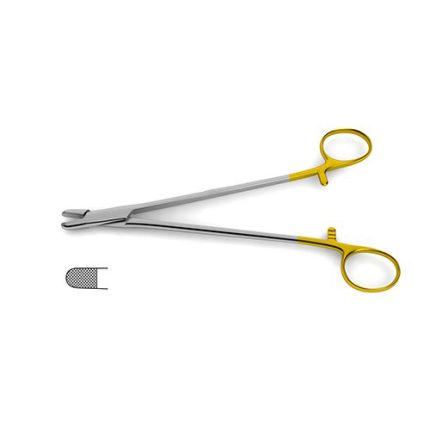 tungsten carbide inserts, 7" (17.8 cm) Sternal Needle Holder and Wire Twister is a multi purpose instrument that can be used in a variety of surgical procedures. Not only is this instrument designed for handling wire and twisting it into place such as in stabilization of graft placement but the same jaws make it well suited for handling a needle. This can be useful in suturing and other manipulations requiring the use of a needle. The tungsten carbide inserts give this instrument strength while the ring handle design allows for ease in manual operation and manipulation.