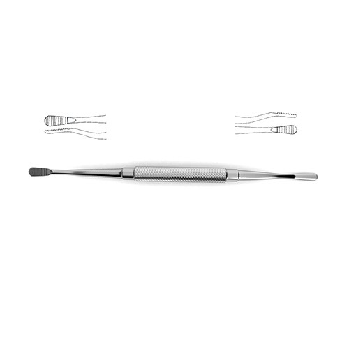 double-ended, plain serrations, 7.0 mm & 5.0 mm wide ends, 7″ (17.5 cm) Bone File #12 can be used in a variety of surgical interventions in neurosurgery or orthopedic surgery. This instrument is double ended with each end featuring plain serrations. It is ideally suited for use in filing bones such as reducing a sharp or jagged bone edge to prevent damage to surround tissue or delicate neuro-vascular bundles. Additionally each even here is a different width: 7.0 mm and 5.0 mm making it versatile enough to be used in a number of different surgical scenarios and can satisfy any surgeon preference.
