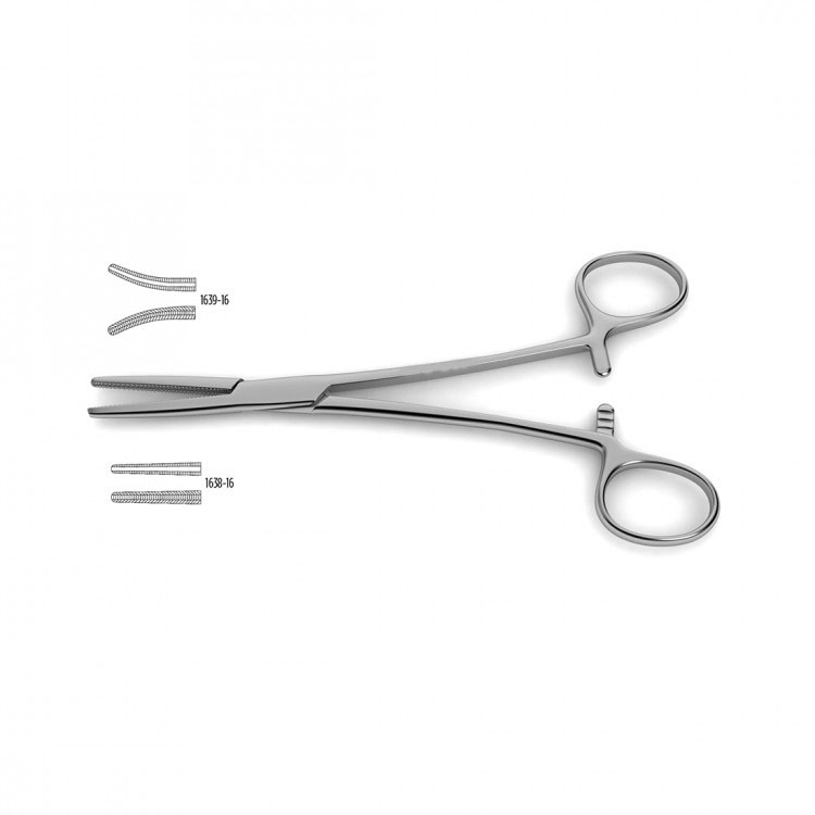 Ferguson Clamp (Angiotribe) has long jaws with cross-hatched serrations that is implemented in general surgeries when arteries need to be cut or crushed and the hemorrhage needs to be restricted. In this way, future bleeding that results from a consequence of the cut can be contained using this clamp. A curved or straight jaw style with different lengths is available to suit various needs of the surgeon.