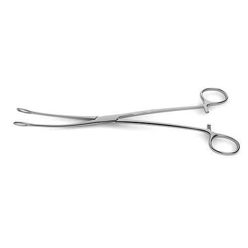 Fletcher Sponge Forceps with serrated tear-drop jaws that are presented in either a straight or curved style. Although these forceps are made for general surgical procedures, the most common field to utilize this instrument is gynecology. For instance, the curved style tends to be used more often in female sterilization procedures. However, they may also appear in other procedures to hold viscera bowel and bladder.