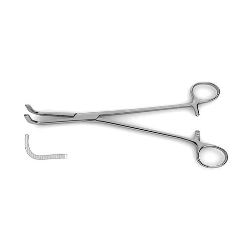Guyon Kidney Clamp may be helpful in surgical operations such as Laparoscopic procedures. This clamp contains a double curved jaw with vertical serrations that aids in stabilizing the kidney and keeping it from slipping. Even after multiple sterilizations, this clamp is able to be prevented from corrosion due to the high quality German stainless steel material it is made from.