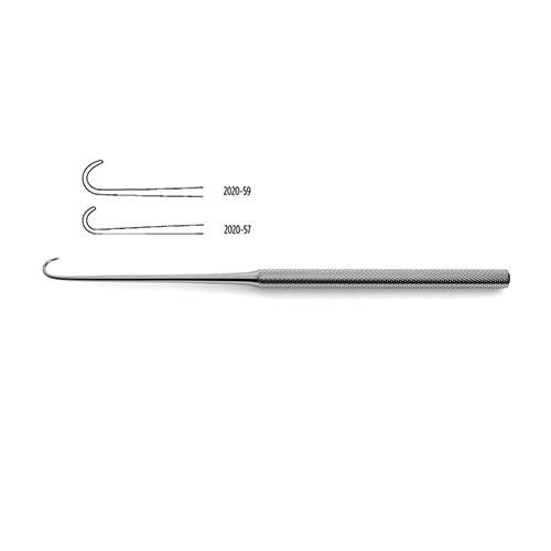 blunt, 6-1/4″ (16.0 cm)Nerve Hook is ideally suited for use in neurosurgical procedures such as craniotomies and spinal surgeries that require retraction of delicate nerve structures. This hook features a slim grip for comfortable handling and maneuvering and an even narrower neck extends from there. The unique feature of this instrument is the blunt curved hook shape that securely keep the nerve held in place with little slippage of the held tissue out of the hook. It is available in two widths 7.0 mm and 9.0 mm making it suitable for a vast array of particular patient needs and surgeon preferences.