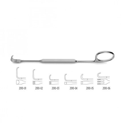Meyerding Finger Retractor is 7" in length and is available in a variety of styles. These styles, for example, include different blade lengths and patterns to suit the special needs of the surgery. This retractor contains only one ring on the handle and is commonly used to retract skin at small or narrow areas.